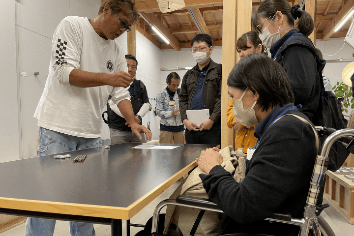 高松市伝統的ものづくりとして国内・海外に知られる「高松盆栽」。盆栽畑を眺めながら、苔玉作りを体験しました。参加者からは、「介護添乗員のサポートの重要さが実感できた」「作った苔玉を部屋や庭に飾ることで旅行を思い出すことができる」といった意見が聞かれました。